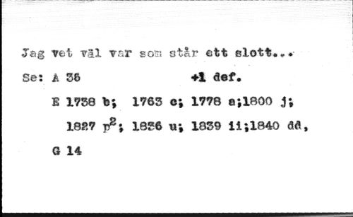 .Tag vet vål vr.r sor. står ett slott.«« Se: å 36 ?! def. //// 1 1730 b; 1763 c; 1778 e;1800 j 1827 p2; 1836 «•, 1839 ii;1840 dd, //// G 14 //// *•