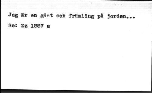 Jag är en gäst oeh främling på Jorden, Se: Zz 1887 e