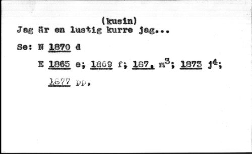 (kusin) //// Jag Sr en lustig kurre Jag... //// Se: H 1870 å //// E 1865 e; 18Ü9 f| 187. n3; 1875