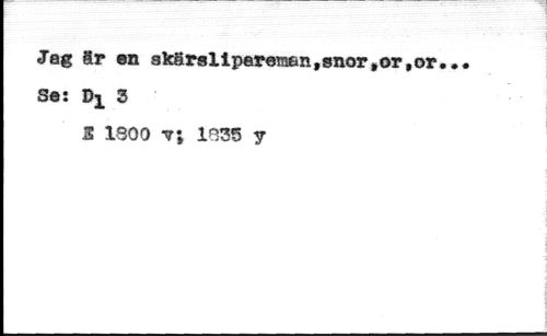 Jag är en skäraliperem&ntsnortor,or.*. Se: Dx 3 //// E 1900 v; 1935 y