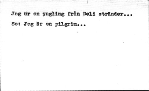 Jeg är on yngling från Doli stränder. //// Ses Jne Rr en pilgrim*..