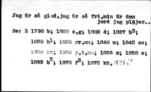 Jag Sr så glad»jag ar s& frifmln är den //// Jord jag plfijer. //// Se: 2 1798 b; 1800 c,g; 1802 d; 1827 hs; //// 1850 h^i 1855 rr ,uu; 1840 m; 1845 aa; 1850 k\c» 1855 1856 z*, 1858 e; //// 1865 h3; 1870 f®«, 1875 ^Lt)%7$iH