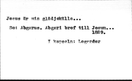 -Je*««! Sr tnin glädlék&lle,*. //// Se: Abgarus. Akgerî bref till Jesura. //// 1829, //// T Varsein: Leg^rfter