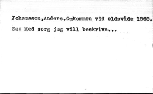 J ohsosson, Anders. Otnkoinmen vid eldsvåda 1860 //// Soi i£ed sorg jag vill beskriva...