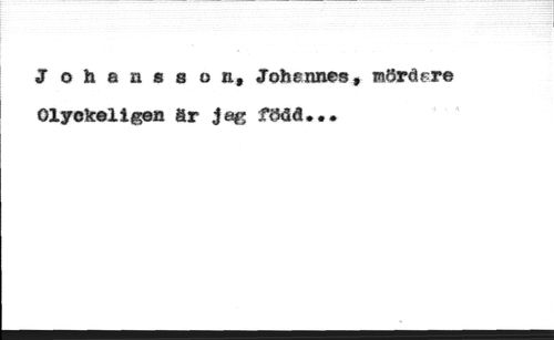 Johansson, Johannes, mördare //// Olyckeligen är jag född...