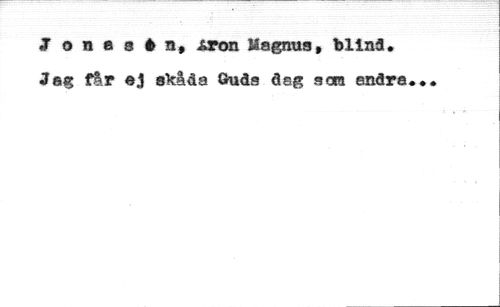 Jones*«, Åron Magnus, blind. Jeg f&r ej skåda Guds dsg nm enåra*