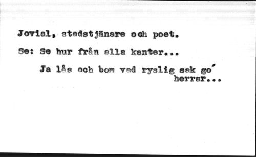 Jorlal, stadstjftnare och poet. //// Se: Se hup fr&n eile kanter.•• //// Ja lSg och bom rad ryslig sek go' //// herrar.•
