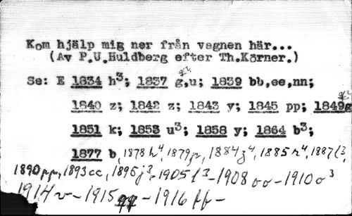 Km hjSlp mig n®r fr£n vagnen här... //// (Av P/J.Kuldberg eftor Th.K'îrner.) //// 3ô: S 1aSjk h3*, 1B57 g,u; IBS9 bb,oe,nn; //// 1840 z; 184n «; 1043 y; 1845 pp; 1849(8 1851 k; 1853 us; 1858 y; 1864 b3; //// 1877 b( IS7§ ^ MIS^MïO' //// ¡m^, /lyj«., mcf *, /wsy ^i^ôîni0^