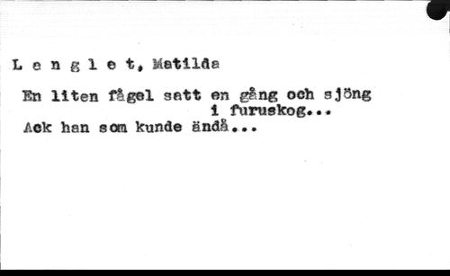 Lenglet, Matilda //// En liten fågel sett en gång och sJSng //// i furuskog... //// Aek han som kunde ändå...
