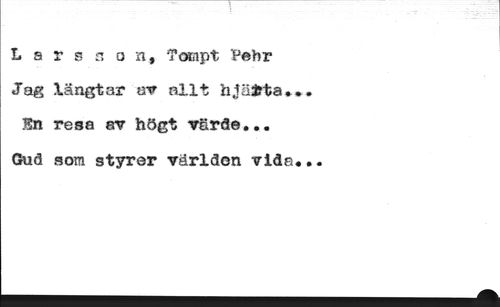 Larsson, Tompt Vebr Jag längtar av allt hjärta* Sn resa av högt värde... Gud som styrer världon vida