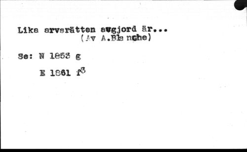 Lik© arvsrätten evgjorâ är* //// {/v A.tfiî nctie) //// Se: K 1652 g //// E 1861 fi