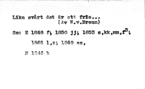 Like svårt aet är att fríe.,. //// {Av W.v.Braun) //// Se: E 1848 f* 1850 jj*, 1855 s.kk.mm.f3; 1B65 l,z; 1869 sa, //// N 1846 h