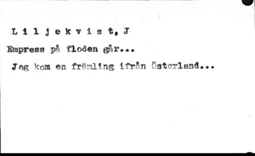 Liljekvist, J Empress på floden går**. //// Sm koa en främling Ifrån Cstcrlsna...