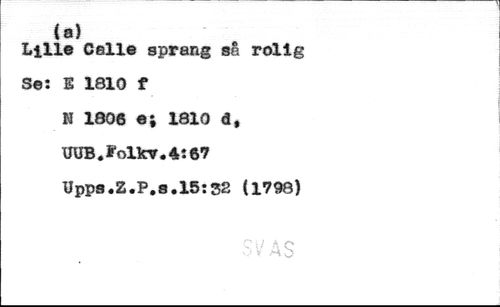 (a) //// Lille Celle sprang sô rolig //// Se: E 1810 f //// N 1806 e; 1810 d, UUB.folkv.4:67 Upps.2.P.s.l5:32 (1798)