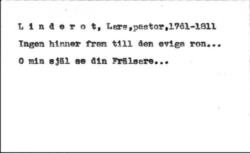 U n ä e r o t, Lars, pastor,1761-1811 Ingen hinner fram till den eviga ron... 0 min själ se din Frälsare...