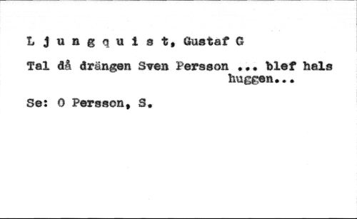 LJungquist, Gustaf G //// Tal då drängen Sven Persson ••• blef hals //// huggen,.. //// Se: 0 Persson, S