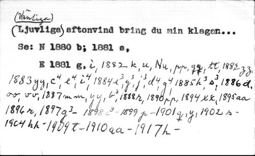 (''Ljuvliga^ aftonvind bring du min klagan... //// Se: N 1880 bi 1881 s, //// Ê 1801 g, t>Y ! & $ 2- h ^ u-j H'¡¿ . L^%'[ ^ //// mzm^> ** ^ l!'b< //// Or n4^r, tt1iX*.JP)t»A, //// /îk\ iW'iy3- /gis-J m 1 ä'-jqa.ytu, iùola -rtc-ïkk -Ifûft-lilO^CL - /?/ JL - '