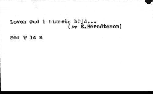 Loven Gud i hiraraels höjd..« //// (Åv E.Berndtsson) //// Se: T 14 n