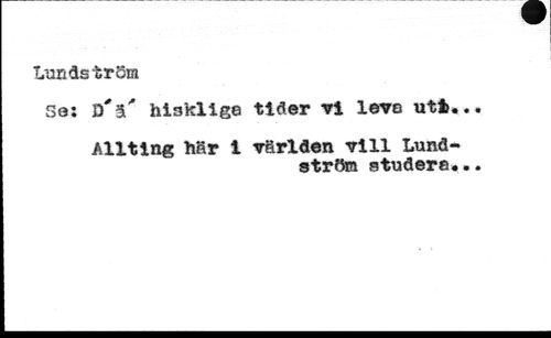 Lundström //// Sa: D'ä' hisklige tider vi leve ut*. //// Allting här i världen vill Lundström studere.