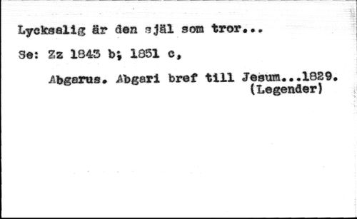 Lyckaallg är don själ so© tror... //// Se: Zz 1843 bi 1851 c, //// /bgerus. Abgari brof till Jesura...1829 //// (Legender)