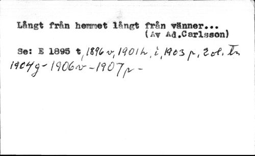 Långt från bemet långt från irftnner... //// (av .Carlsson) //// 3e: E 1895 t />., //// HCt/y IWnr-rtOjps-