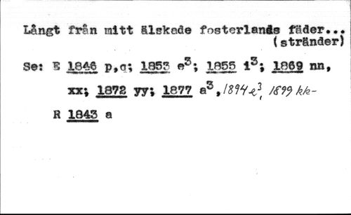 Långt fr&n laîtt âlskoâe fosterlanâs fäder... //// (stränder) //// Se: 1646 p,o; 185? e3; 1855 Is; 1669 nn, //// XX; 187g yy; ie77 a^/W-e3, kk- //// R 1843 a