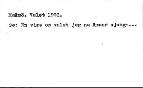Malmö. Tal«t 1908. //// Se: la visa om velat jag nu ämnar sjunga...