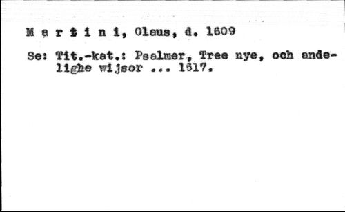 M 8 r t i n i, Olaus, d. 1600 //// Se: Ylt.-kat.s Fselaer, Trea nye, ocli andelivs wl^sor ... 1317.