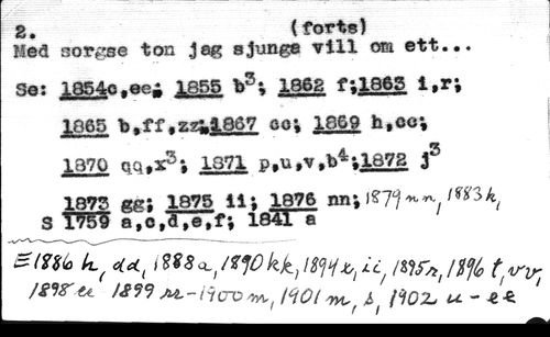 g. {forts) //// Med sorgse ton Jag sjunga vill om ett... //// Se: 1854c.eej 1855 b5*» 1862 fi 1865 i,ry 1065 b. ff. 224.1867 öo; 1869 b.ecy 1370 qq,XSy 1871 P.U«V.b*yl87g J3 //// 1875 gg; 1875 il» 1876 nn S 1759 a,c,d,e,fy 1841a //// imk //// s/m kt 4*, mr^n% t^v, //// /girti /gf? M-iTc-cni' 1'iOIW-, i i^OZj - t*.