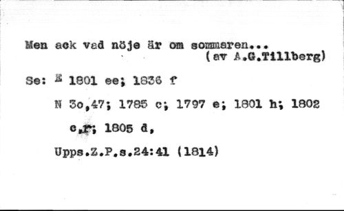 Men ack vaå nöj© är om sommaren*.. //// (ev A.G.Tlllberg) //// Se: * 1801 ee; 1836 f //// N So,47; 1785 c; 1707 e; 1301 h; 1802 cjr, 1805 d, //// Upps.Z.P.s.24:41 (1814)