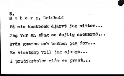 tf>55 //// o b e r g, KelnholS P& min kuskbock djärvt Jag sitter. Jag mr en g£tng en dejllg sockerraö Från gumnan och barnen Jog for... En visstump vill Jeg sjunga... //// I prsdikstolen slår en präst...