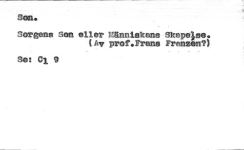 8m. //// Sorgens Scm eller ngnnlakans Skapelse. //// ( Ar prof,frans Fransen?) //// S©î Ci 9
