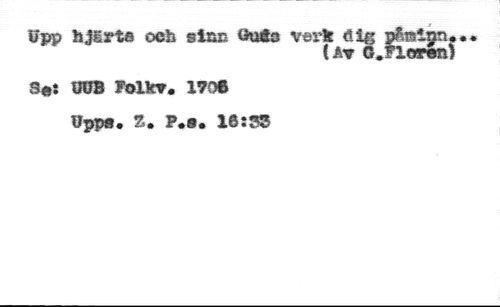Upp hjgrts och stau öuäö verit 6ig påminn*** //// (Av O.Floren) //// Bmi mm Foikv. 1706 Upps. %* P.s. 16:?3