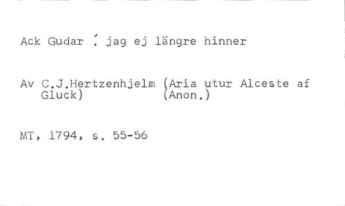 Ack Gudar : jag ej längre hinner //// Av C.J.Hertzenhjelm Aria utur Alceste af //// Gluck) Anon.) //// MT, 1794, s. 55-56