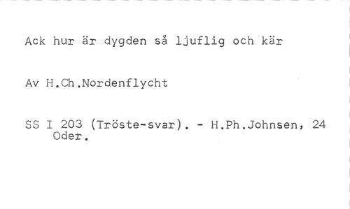 Ack hur är dygden så ljuflig och kär Av H.Ch.Nordenflycht //// SS I 203 (Tröste-svar). - H.Ph.Johnsen, 24 Oder.