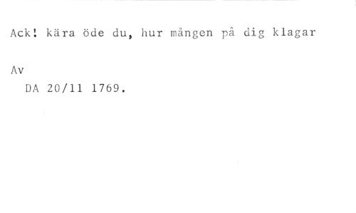 Ack! kära öde du, hur mången på dig klagar //// Av //// DA 20/11 1769.