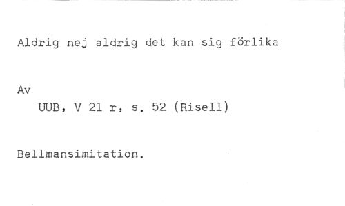 Aldrig nej aldrig det kan sig förlika //// Av //// UUB, V 21 r, s. 52 (Risell) //// Bellmansimitation.
