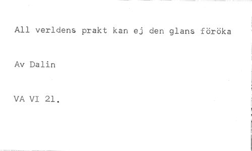 All verldens prakt kan ej den glans föröka //// Av Dalin //// VA VI 21.