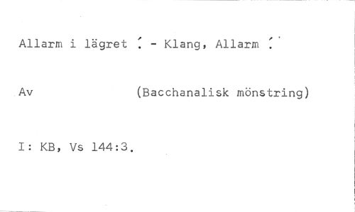 Allarm i lägret : - Klang, Allarm //// (Bacchanalisk mönstring) //// I: KB, Vs 144:3.