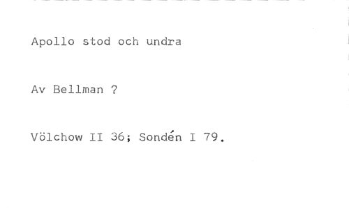 Apollo stod och undra //// Av Bellman ? //// Völchow II 36; Sonden I 79.