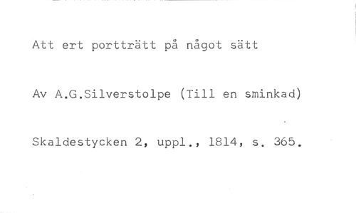 Att ert porttvätt på något sätt //// Av A.G.Silverstolpe (Till en sminkad) //// Skaldestycken 2, uppl., 1814, s. 365.