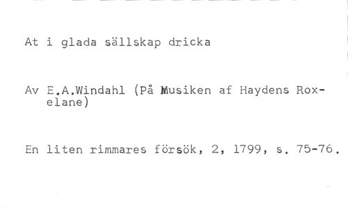 At i glada sällskap dricka //// Av E.A.Windahl (På Musiken af Haydens Roxelane) //// En liten rimmares försök, 2, 1799, s. 75-76.