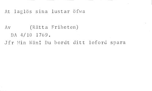 At laglös sina lustar öfwa //// Av (Rätta Friheten) //// DA 4/10 1769. //// Jfr Min Wän! Du bordt ditt loford spara