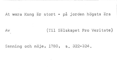 At wara Kung är stort - på jorden högsta ära //// Av (Til Sälskapet Pro Veritate) //// Sanning och nöje, 1780, s. 322-324.