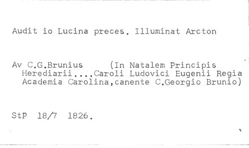 Audit io Lucina preces. Illuminat Arcton //// Av C.G.Brunius (In Natalem Principis //// Herediarii....Caroli Ludovici Eugenii Regia Academia Carolina,canente C.Georgio Brunio) //// StP 18/7 1826.