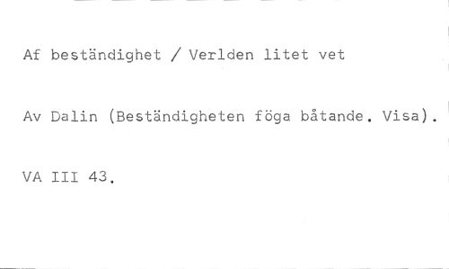 Af beständighet / Verlden litet vet //// Av Dalin (Beständigheten föga båtande. Visa //// VA III 43.