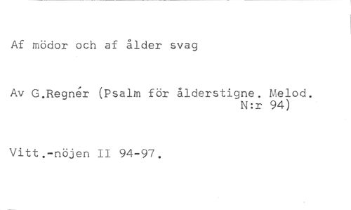 Af mödor och af ålder svag //// Av G.Regner (Psalm för ålderstigne. Melod. //// N:r 94) //// Vitt.-nöjen II 94-97.