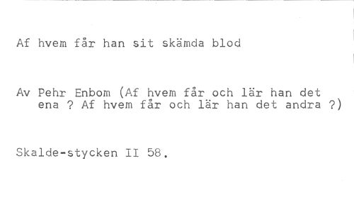 Af hvem får han sit skämda blod //// Av Pehr Enbom (Af hvem får och lär han det ena ? Af hvem får och lär han det andra ?) //// Skalde-stycken II 58.