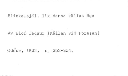 Blicka,själ, lik denna källas öga //// Av Elof Jedeur (Källan vid Forssen) //// Odeum, 1832, s. 352-354.
