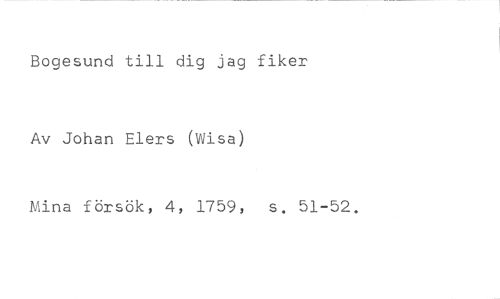 Bogesund till dig jag fiken //// Av Johan Elers (Wisa) //// Mina försök, 4, 1759, s. 51-52.